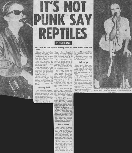 The chance of getting a gig in a mainstream venue was almost non-existent, although I was trying. Shortly after Buster joined, I’d hopefully lodged the band with the premier booking agency in Auckland, Benny Levin’s, as an urban blues band: the punk tabloid thing was just breaking in Auckland so it seemed like the only way in, was to try and subvert somehow – to go under whatever taste radar, or lack thereof, these agencies might try and employ to keep us out.