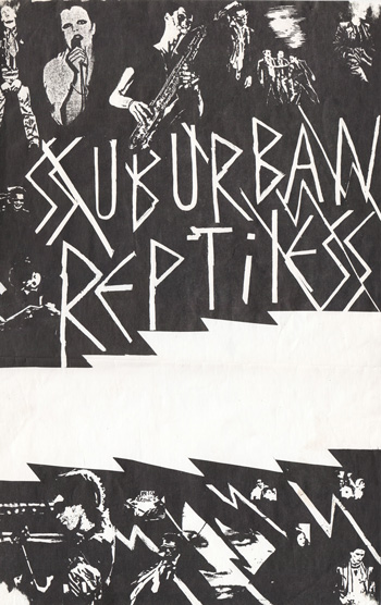 I began a government funded guerrilla campaign for the Suburban Reptiles, photocopying countless flyers with little more than the name and some smart sloganing thought up in the practice rooms.